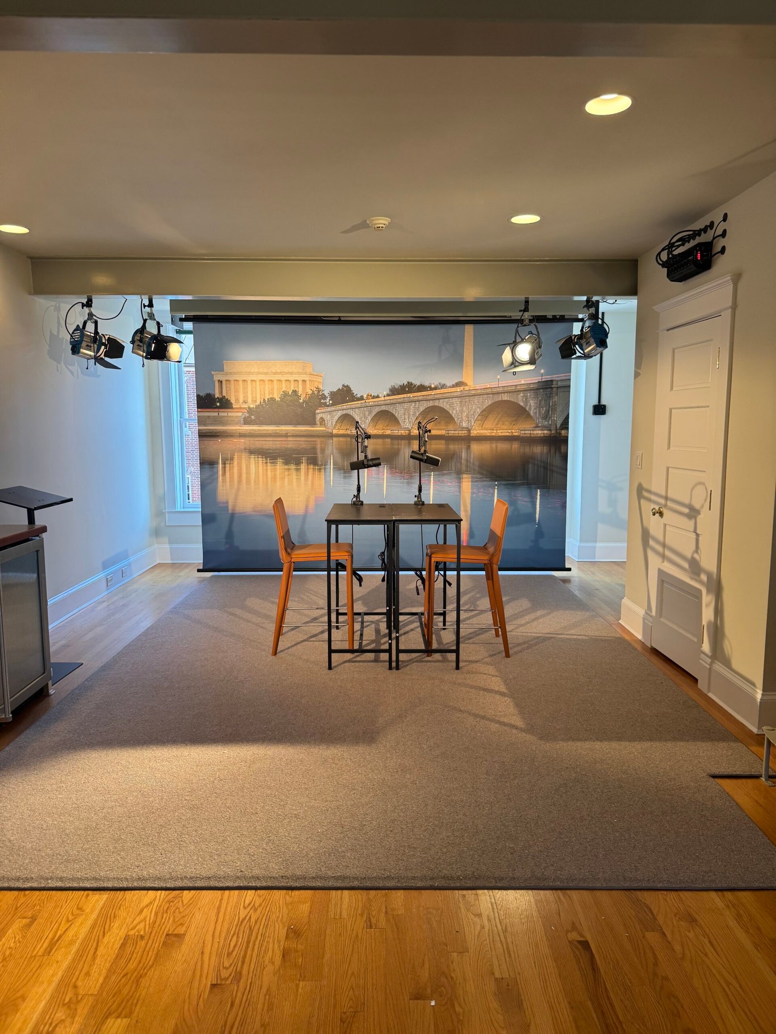 Located on the third floor of one of most elegant buildings in Old Town Alexandria Features the latest state of the art audio/visual equipment Vintage professional incandescent stage lighting Broadcast Engineer and Audio/Video Tech Support provided Ideal for up to six guests